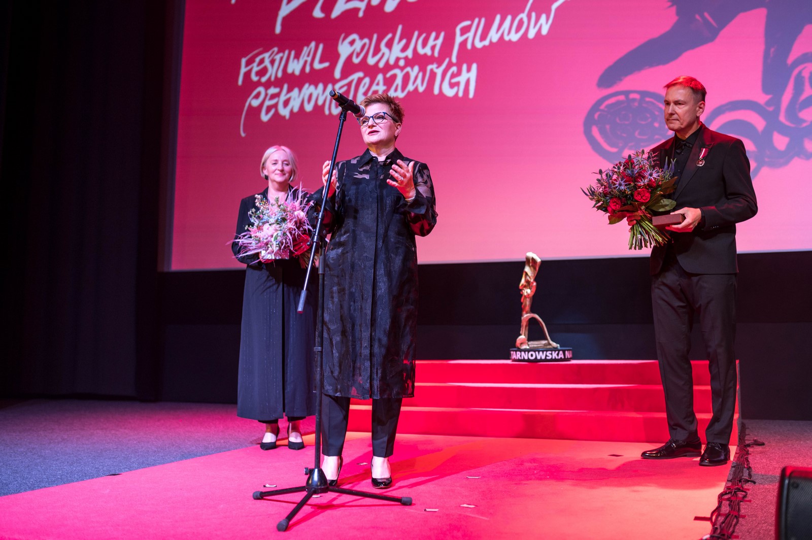 W imieniu Ministra Kultury i Dziedzictwa Narodowego pani Hanny Wróblewskiej aktu dekoracji dokonała Posłanka na Sejm Rzeczypospolitej Polskiej Urszula Augustyn podczas Gali Wręczenia Nagród 38. TNF, 8 czerwca 2024 r. w Kinie Marzenie.
