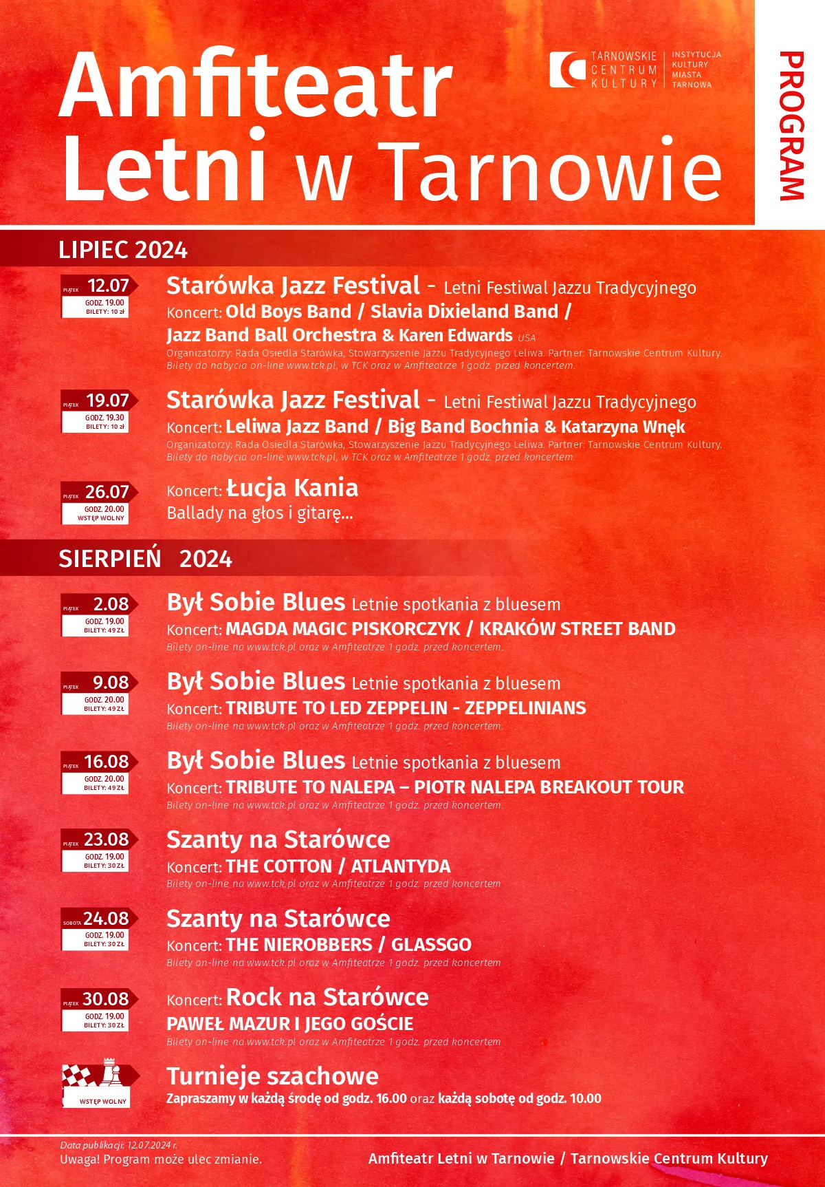 Program imprez w Amfiteatrze Letnim