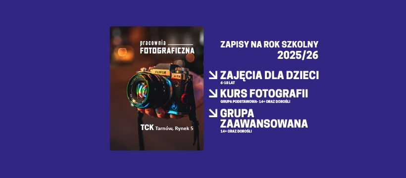 Zapraszamy do udziału w nowym sezonie zajęć Pracowni Fotograficznej Tarnowskiego Centrum Kultury. 8 września ruszają zapisy online. Zajęcia rozpoczną się w październiku 2025 roku.