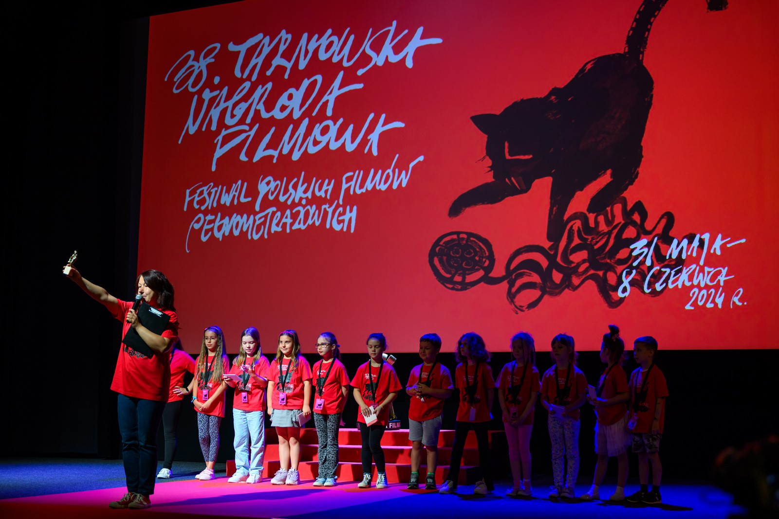 Fotorelacja z czwartego dnia 38. Tarnowskiej Nagrody Filmowej: pierwsze projekcje konkursowych bajek dla najmłodszych widzów w ramach Filmów Młodego Widza, prezentacja Jury Dziecięcgo 38. TNF, projekcja konkursowa "Tylko dzień i noc", po seansie spotkanie z reżyserem filmu Grzegorzem Brzozowskim - prowadzenie Ryszard Jaźwiński (Trojka - Polskie Radio), projekcja konkursowa "Biała odwaga", po filmie spotkanie z reżyserem Bartoszem Konopką i operatorem zdjęć górskich Marcinem Polarem - prowadzenie Kuba Armata (Dyr. artystyczny 38. TNF) - Kino Marzenie, 3.06.2024
