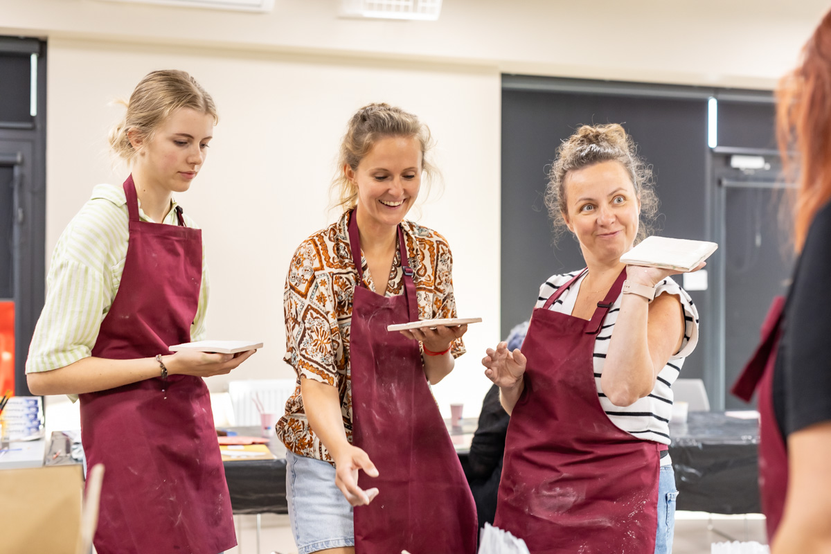 W dniu 31 lipca 2025 r. w Domu Kultury Westerplatte odbyło się drugie spotkanie warsztatów ceramicznych „Płytka tarnowska” – skierowane do osób dorosłych. Uczestnicy dekorowali i szkliwili autorskie kafle ceramiczne, które poźniej zostaną zaprezentowane na wystawie podsumowującej projekt. Warsztaty prowadzą: Yolik Naal oraz Dorota Omylska.